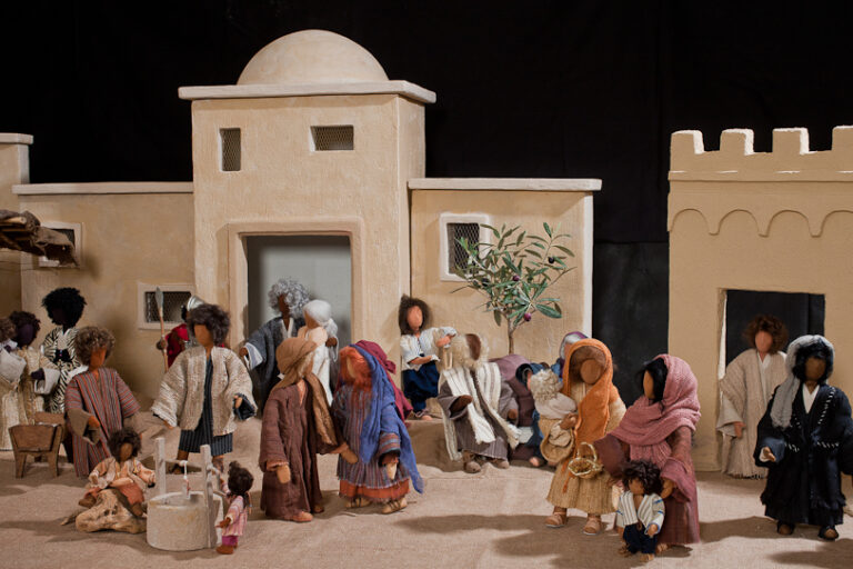 Le récit biblique n’est pas simplement un texte, un son, une voix, il devient espace dans lequel nous sommes invités à entrer. Avec les figurines il est alors aisé de dépasser les mots et les pensées pour entrer dans une relation personnelle avec l’actualité de la Parole de Dieu : elles favorisent une relation nouvelle entre la Parole et moi. Elles révèlent combien les récits de la Bible rejoignent ma propre histoire, mon expérience de vie.