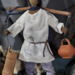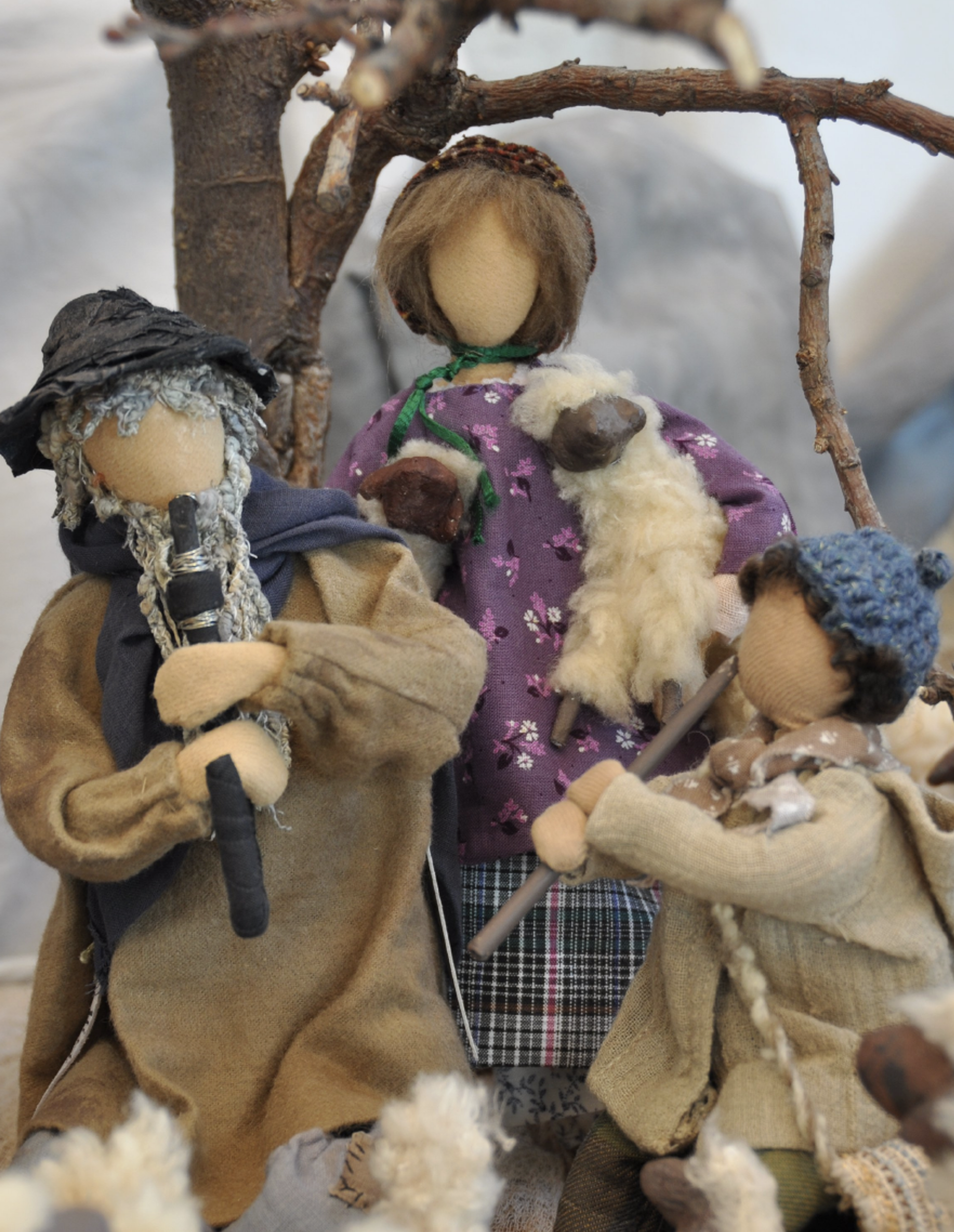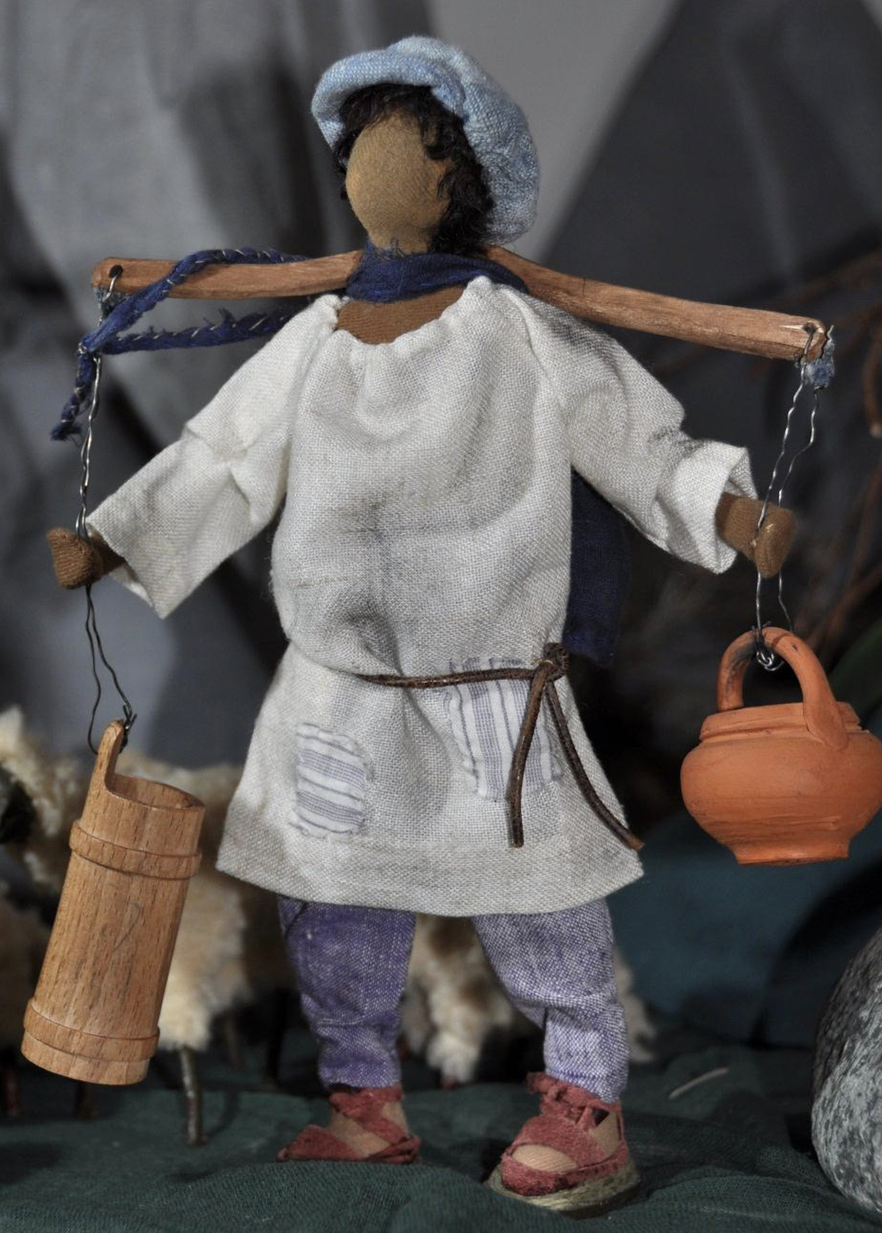 Une attention particulière est portée à la confection des vêtements : ils sont composés de fibres naturelles (lin, laine, coton) aux couleurs douces, unies ou rayées, reflétant les possibilités textiles de l’époque biblique. Différentes peaux sont utilisées pour les cheveux. Chaussures en cuir, foulards et turbans complètent le caractère individuel de chaque figurine .