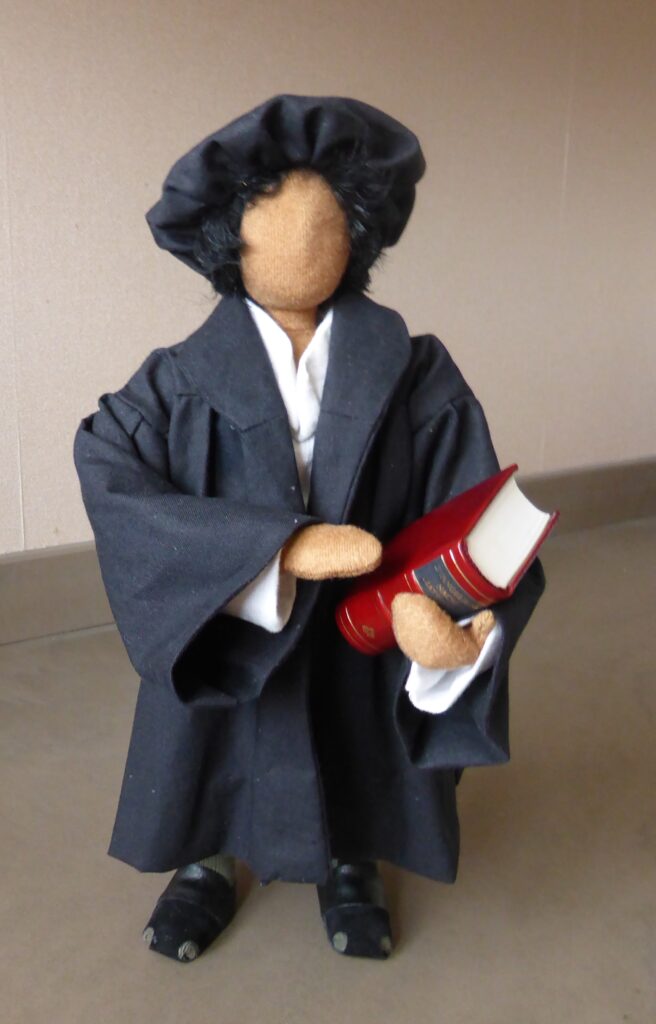 Elles nous surprendront toujours… Leur corps est léger et flexible et leur structure interne est en corde armée… Les bras, les pieds, le tronc et la tête peuvent être manipulés de 1001 manières. Cette légèreté signifie toutefois stabilité : leurs pieds sont de plomb ! Avec leur visage à peine ébauché, elles peuvent exprimer multiples comportements, émotions et attitudes… Leur puissance d’expression est soutenue par le langage du corps dans l’attitude donnée à la figurine. Ces figurines sont destinées à donner vie aux personnages bibliques en particulier : elles créent un espace où le récit pourra se dérouler sous nos yeux et où chacun peut avec une figurine aller à la rencontre de l’évènement, d’ une Parole vivifiante. Une figurine peut facilement endosser le rôle de divers personnages par le changement de ses habits !